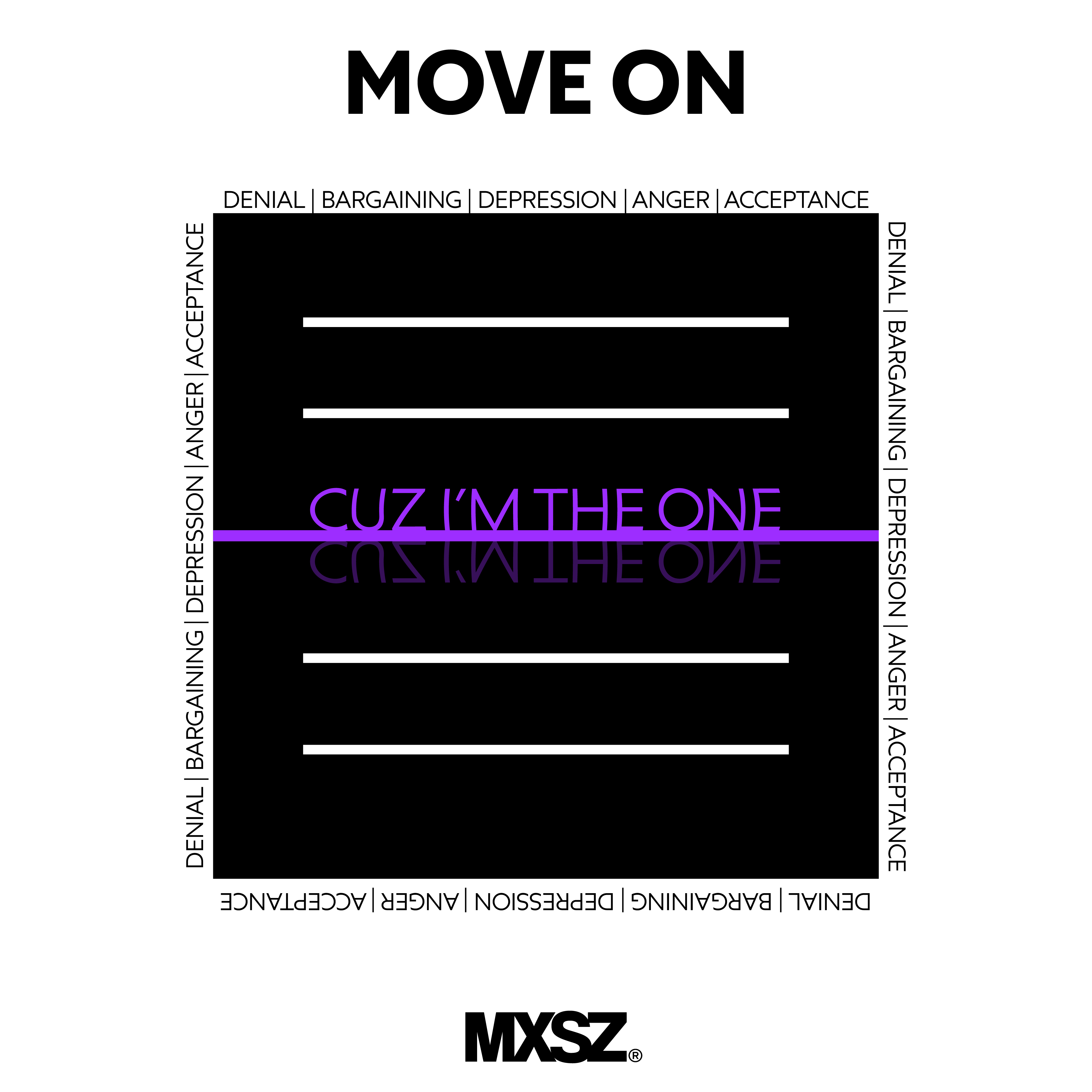 The third release is titled "Move On - cuz i'm the one". This represents the last stage of grief, acceptance. The lines represent the linear motion of time, intending to demonstrate